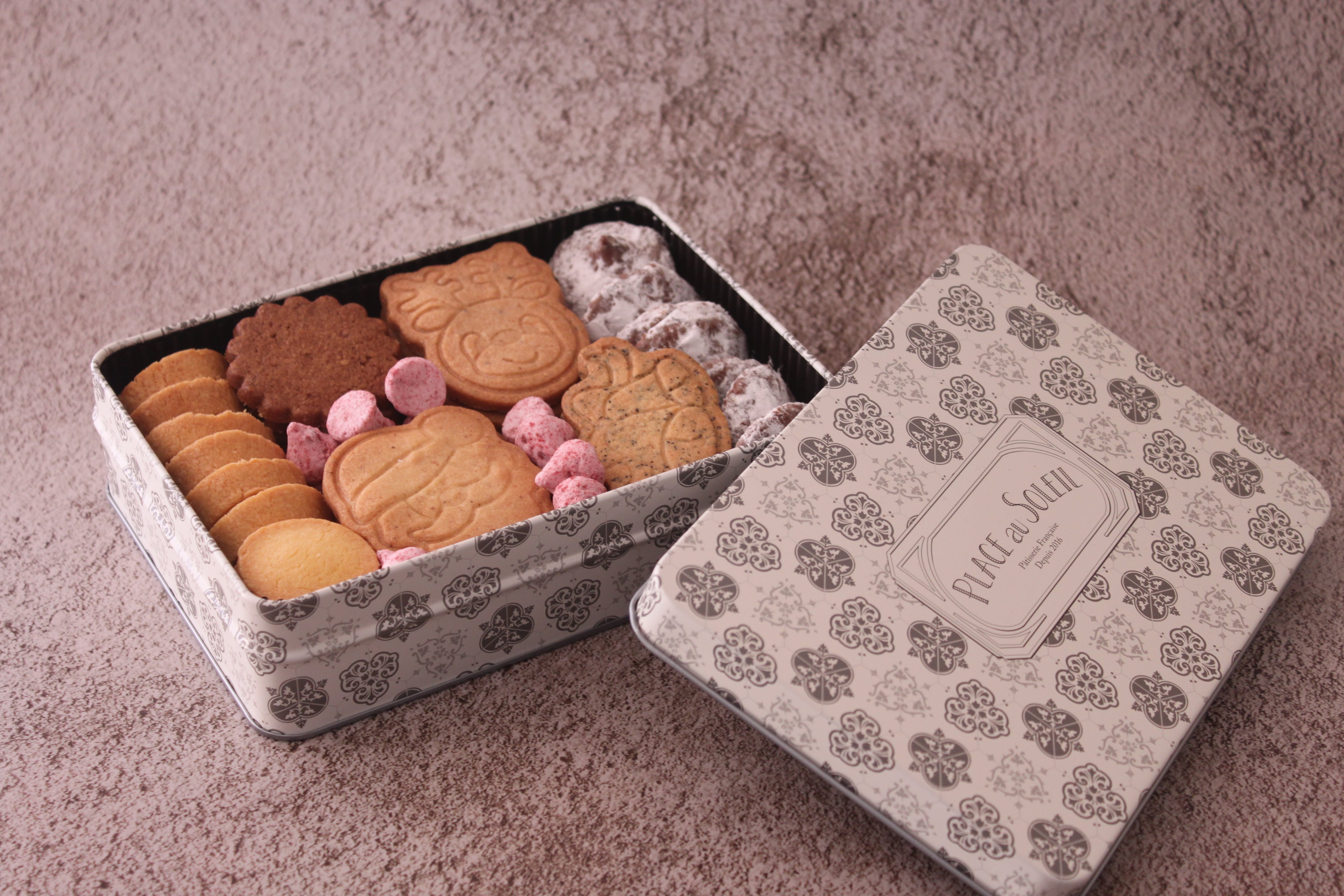 ショコラやスパイスを使用したシックな焼き菓子7種類が入った限定焼き菓子缶は、クリスマスカラーのリボンであしらって、贈り物にもおすすめです。
